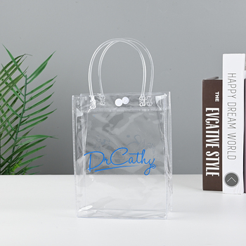 Custom Waterproof Clear Transparent Plastic Handbag Packing Reusable Boutique Wedding Party Gift Wrap Tote PVC Bag